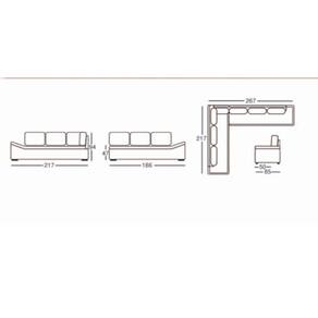Dimensões do Produto: Altura: 94,00 cm Largura lado direito: 267,00 cm Largura lado esquerdo: 217,00 cm Profundidade: 85,00 cm Peso: 74 kg