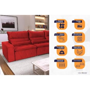 Ele possui encosto reclinável em cinco posições, proporcionando-lhe mais conforto na hora do descanso. Não para por aí: seu assento retrátil conta com espuma D33 e molas espirais, transformando seu sofá em uma verdadeira cama para assistir seu filme preferido.