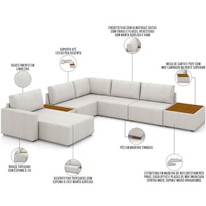 Com uma estrutura em madeira reflorestada imunizada contra mofo, cupins e micro-organismos, este sofá é sinônimo de durabilidade e qualidade. O assento fixo é estofado com espuma D-26 e coberto por uma manta acrílica para o máximo conforto e suavidade. O encosto fixo possui almofadas de fibra e flocos, também cobertas por uma manta acrílica, proporcionando um apoio aconchegante para as suas costas. Já o design moderno desse sofá de canto se destaca como peça central na sua sala de estar. Seu acabamento em linho confere um toque elegante e sofisticado ao ambiente. Ideal para receber visitas ou desfrutar de momentos relaxantes em família.