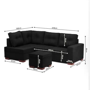 Sofá de canto modulado com 1 chaise, 1 peça de dois lugares e 1 PUFF. Estrutura em madeira de eucalipto e pinnus, composto com percinta elástica, manta siliconada e espuma d23. Revestido com tecido suede liso preto . Almofadas soltas com enchimento em fibra e flocos. Pés de plástico na cor tabaco. Acompanha Almofadas extras: Não Almofada do assento: Fixa Almofada do encosto: Fixa Altura do assento até o chão: 43 Altura do Conjunto: 85 Altura do Encosto: 52 Altura dos Pés: 6 Ambiente Principal: Sala de Estar Complexidade da Montagem: Cor: Preto Cor do Produto: Preto Densidade do Assento: D-23 Densidade do Encosto: D-23 Enchimento do Assento: Espuma Enchimento do Encosto: Espuma Estilo de Braço: Braços Quadrados Firmeza do Assento: Médio Informações Complementares: A sua sala de estar para estar completa merece o estofado de canto Gávea, seja para receber a família e amigos ou curtir o seu momento de descanso. Tem como principal característica o conforto e a versatilidade. Excelente estrutura composta por madeira de Itens Inclusos: 1 Sofá e 2 Almofadas Largura do Sofá Maior: cm Linha ou Coleção: Manual de Especificação Técnica: Manual de Montagem e Instalação: Material dos Pés: Plástico Montagem Flex: Necessita Montagem: Não Origem do Produto: Nacional Peso: 71.7 Pet Friendly: Não Possui Percintas Elásticas: Sim Possui Pés: 12 Possui Rodízio: Não Profundidade Quando Estendido: cm Recomendações de Uso, Manutenção e Limpeza: Seguir o manual de instruções Resistente à Chuva: Revestimento do Braço: Suede Rodízio com Trava: Sistema de Montagem: Suporta Até (kg): 120 Tecido Predominante: Suede Tipo de Encosto: Fixo Tipo de Mola: Não Possui