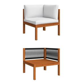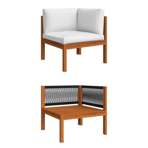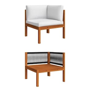 - Cor da almofada: branco creme- - Cor da corda: preta- - Material do sofá: madeira maciça de acácia com acabamento a óleo, corda- - Dimensões: 25,6 ? x 25,6 ? x 23,6 ? (L x P x A) - - Espessura da almofada do assento: 2,4 ?- - Espessura da almofada traseira: 3,9 ?- - Pode ser organizada em várias configurações para atender às suas necessidades e espaço- - Montagem necessária: Sim- - A entrega contém: - - 1 x sofá de canto- - 1 x almofada de assento- - 2 x almofada traseira-