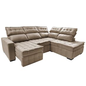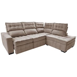 Sofá De Canto Direito 2,65x2,30m Retrátil E Reclinável Com Molas Ensacadas Cama Inbox Nobre Bege