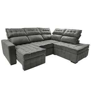Sofá De Canto Direito 2,65x2,30m Retrátil E Reclinável Com Molas Enadas Cama Inbox Nobre Cinza