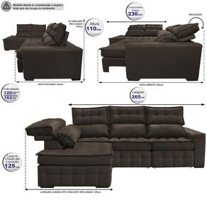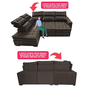 ATENÇÃO PARA A POSIÇÃO DO SOFÁ: olhando ele de frente, a chaise fica na esquerda, sentado no sofá a chaise fica na direita.