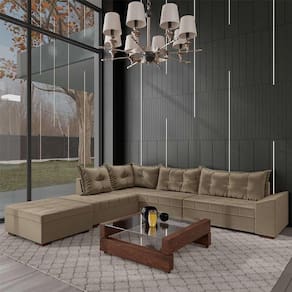que tal o sofá de canto itapema? uma casa aconchegante está entre seus sonhos, né? e nada como um amplo sofá de canto para receber toda a família e proporcionar bons momentos a todos. feito em materiais duráveis e resistentes, o modelo itapema não só tem estrutura em eucalipto, como traz fibra e flocos no encosto, espuma d23 no assento e revestimento em veludo - o combo perfeito para acomodar bem. ah, notou que, além do sofá de canto, ele já tem puff para esticar os pés? ou pode até servir de assento extra nos dias de casa cheia! tudo isso ainda acompanha um design moderno com coloração simples de inserir no ambiente. com ele, sua casa vai ficar cheia de bom gosto e conforto :) Marca: Modern Ean: 7908748801299