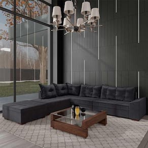que tal o sofá de canto itapema? uma casa aconchegante está entre seus sonhos, né? e nada como um amplo sofá de canto para receber toda a família e proporcionar bons momentos a todos. feito em materiais duráveis e resistentes, o modelo itapema não só tem estrutura em eucalipto, como traz fibra e flocos no encosto, espuma d23 no assento e revestimento em veludo - o combo perfeito para acomodar bem. ah, notou que, além do sofá de canto, ele já tem puff para esticar os pés? ou pode até servir de assento extra nos dias de casa cheia! tudo isso ainda acompanha um design moderno com coloração simples de inserir no ambiente. com ele, sua casa vai ficar cheia de bom gosto e conforto :) Marca: Modern Ean: 7908748801275