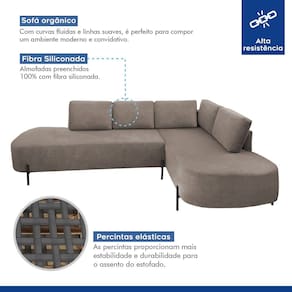 Imagine um sofá que une charme e elegância com um toque moderno: é o nosso sofá orgânico. Com um design que mistura modernidade e suavidade, ele é a escolha perfeita para quem busca sofisticação sem abrir mão do conforto. A base em ferro garante estabilidade e aquele toque industrial chique, enquanto as formas arredondadas trazem um ar descolado para qualquer ambiente. Seja para relaxar depois de um dia cansativo ou receber os amigos com estilo, esse sofá vai ser o ponto focal da sua sala de estar. E o melhor de tudo: além de lindo, ele é espaçoso, funcional e pronto para transformar o seu espaço! Acompanha Almofadas extras: Não Almofada do assento: Removível Almofada do encosto: Removível Altura do assento até o chão: 45 cm Altura do Conjunto: 85 cm Altura do Encosto: 40 cm Altura dos Pés: 15 cm Ambiente Principal: Sala de Estar Cor: Bege Cor do Produto: Bege Estilo de Braço: Sem Braços Informações Complementares: Assento Pillow com 10 cm de altura; Mola Bonel Itens Inclusos: 1 Sofá Largura do Sofá Maior: cm Linha ou Coleção: Organico Material dos Pés: Tubos de Ferro Montagem Flex: Não Necessita Montagem: Não Nível de Conforto: Confortável Origem do Produto: Nacional Peso: 83 kg Pet Friendly: Não Possui Baú: Não Possui Percintas Elásticas: Sim Possui Pés: 08 Possui Rodízio: Não Recomendações de Uso, Manutenção e Limpeza: Não utilizar produtos químicos. Não utilizar produtos abrasivos. Não molhar. Utilizar pano macio e seco . Suporta Até (kg): 120 kg Tecido Predominante: Veludo Tipo de Encosto: Fixo Tipo de Mola: Molas Bonnel Marca: Celflex