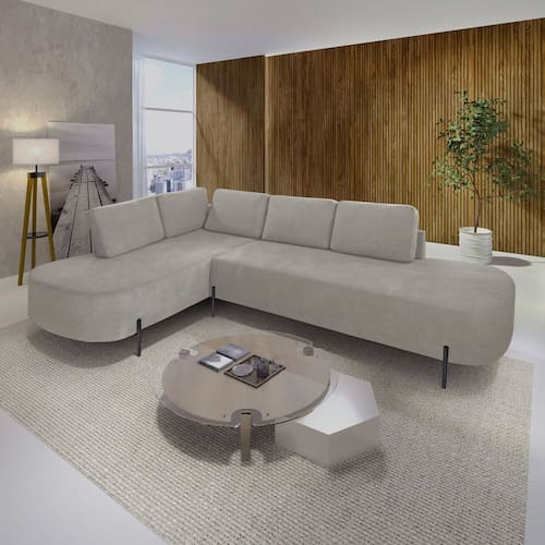 O sofa bipartido é confortável? Claro, além de perfeito para compor a decoração para sala de estar. Produto Montado: Não Acompanha Almofadas extras: Não Almofada do assento: Fixa Almofada do encosto: Removível Altura do assento até o chão: 45.0000 Altura do Encosto: 40 cm Altura dos Pés: 15 cm Ambiente Principal: Sala de Estar codigo_ean: 7900288205230 Cor: Bege Cor do Produto: Bege Densidade do Assento: D-28 Enchimento do Assento: Espuma Estilo de Braço: Um Braço Firmeza do Assento: Macio Itens Inclusos: 1 Sofá Lado da Quina (Visto de Frente): Direito Lado do Sofá de Canto: Lado Maior à Direita Linha ou Coleção: Luna Marca: Celflex Material dos Pés: Ferro Necessita Montagem: Não Origem do Produto: Nacional Peso: 83 kg Pet Friendly: Não Possui Mola: Sim Possui Percintas Elásticas: Sim Possui Pés: 08 Possui Rodízio: Não Quantidade de Itens: 1 Recomendações de Uso, Manutenção e Limpeza: Não utilizar produtos químicos. Não utilizar produtos abrasivos. Não molhar. Utilizar pano macio e seco. Suporta Até (kg): 120 kg Tecido Impermeável: Não Tecido Predominante: Veludo Tipo de Encosto: Fixo Tipo de Mola: Molas Bonnel Tipo de Sofá: Sofá de Canto Marca: Não Informado