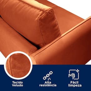 O Sofá Orquídea MadeiraMadeira conta com conforto, materiais nobres, durabilidade e versatilidade com um preço que cabe no bolso. O conforto é garantido pelo tecido nobre de veludo, pela espuma macia no assento e pelo encosto com 3 camadas de conforto. Possui ainda alta durabilidade, estrutura de madeira maciça de eucalipto e garantia de 2 anos. Garanta o seu Orquídea e receba as visitas com muito mais conforto e elegância. Acompanha Almofadas extras: Não Almofada do assento: Fixa Almofada do encosto: Fixa Altura do assento até o chão: 46 Altura do Conjunto: Altura do Encosto: 45 Altura dos Pés: 10 Ambiente Principal: Sala de Estar Complexidade da Montagem: Baixa: pode ser montado por uma pessoa sozinha Cor: Terracota Cor do Produto: Terracota Densidade do Assento: D-23 Densidade do Encosto: Camadas de Densidades Diferentes Enchimento do Assento: Espuma Enchimento do Encosto: Fibra Siliconada Estilo de Braço: Braços Redondos Firmeza do Assento: Macio Informações Complementares: Densidade Braço D19. Enchimento do encosto: fibra siliconada com flocos de espuma envolvidas com manta siliconada. Itens Inclusos: 1 Sofá, Acessórios e Instrução de Montagem Largura do Sofá Maior: cm Linha ou Coleção: Orquídea Manual de Montagem e Instalação: https://cdn2.madeiramadeira.com.br/atributo/takei-estofados/709679-sof-de-canto-orqu-dea.pdf Material dos Pés: Madeira Necessita Montagem: Sim Origem do Produto: Nacional Peso: 61 Pet Friendly: Não Possui Percintas Elásticas: Sim Possui Pés: 09 Possui Rodízio: Não Recomendações de Uso, Manutenção e Limpeza: Evitar exposição direta à luz solar, limpar com escova macia e aspirar o pó semanalmente, não utilizar produtos químicos, removedores, alvejantes, etc. Evite exercer pressão excessiva sobre determinada partes do estofado, não utilizar para limpeza equipamentos a vapor de água. Revestimento do Braço: Veludo Sistema de Montagem: Bucha Americana Suporta Até (kg): 250 Tamanho: Tecido Predominante: Veludo Tipo de Encosto: Fixo Tipo de Mola: Não Possui