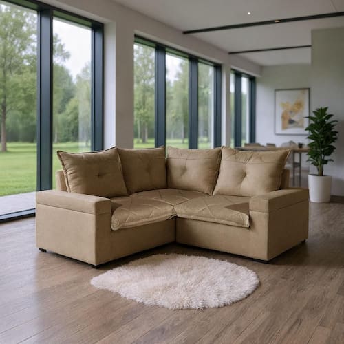 O Sofá de Canto Tera Plus Bom Pastor 4 Lugares é ideal para quem busca praticidade sem abrir mão do conforto. Com medidas de 1,90 x 1,90 m de largura, 1,00 m de altura e 98 cm de profundidade, é compacto e ao mesmo tempo aconchegante. Equipado com molas ensacadas e encosto reclinável, garante maciez, sustentação e versatilidade para seus momentos de descanso. Produzido com materiais de qualidade e direto da fábrica, é a escolha certa para valorizar sua sala de estar com elegância e durabilidade. Direto da fábrica, o sofá é enviado na caixa, o que facilita o transporte, torna a entrega mais prática e é de montagem simples.