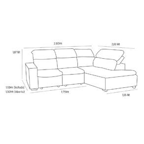 DIMENSÕES Altura: 107 cm Largura: 178 cm | chaise: 105 cm Profundidade: 110 cm | chaise: 200 cm Peso: 75,8 kg