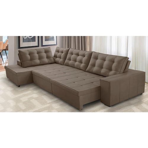 Sofá de Canto Retrátil e Reclinável com Molas 3,00x2,00 Esq Jacke Suede Cappuccino Adonai Estofados - Nude