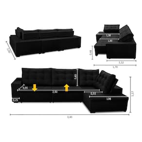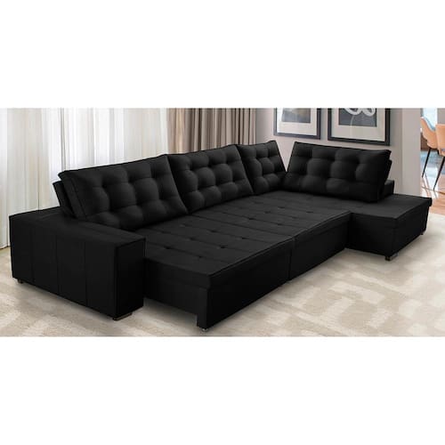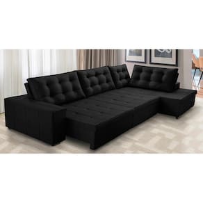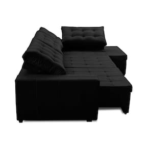 Sofá de Canto Retrátil e Reclinável com Molas 3,40x2,00 Jacke Suede Preto Adonai Estofados