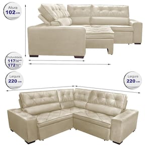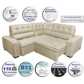 Sofa de Canto Retrátil e Reclinável com Molas Cama inBox Austin 2,20m x 2,20m Suede Velusoft Bege