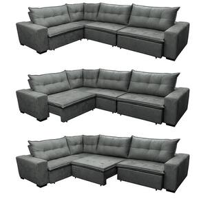 Sofa De Canto Retrátil E Reclinável Com Molas Cama Inbox Oklahoma 3,85x2,61 Ou 2,61x3,85 Cinza Chegou o Maravilhoso Sofá de Canto Retrátil e Reclinável com Molas Cama inBox Oklahoma. O que o torna especial são assentos com espuma D33 envolvidas em fibra Siliconada Compactada para que tenha um toque gostoso e aconchegante, proporcionando conforto de um colchão em um Belíssimo Sofá, além de seu maravilhoso designer ele te posibilita escolher onde deseja o canto ou o lado maior de acordo com sua sala basta apenas mudar o modulo central de lado e conectar os modulos novamente. Sua sala jamais será como antes! Características: -Encosto Reclinável com 5 posições, almofadas fixas compostas de 80% fibra siliconada e 20% flocos de espuma e percintas elasticas para maior conforto. -Assentos: Retráteis com espuma D33 envolvidas em fibra SILICONADA compactada, Molas espiral, percintas Pneumáticas com feltro para proteger do atrito com as molas. -Braços: Com 25cm de largura e com espuma D23 e costuras duplas. -Fixação: Grampos galvanizados -Estrutura de Madeira maciça 100% eucalipto de reflorestamento, produto ecologicamente correto -Tecido suede com toque aveludado