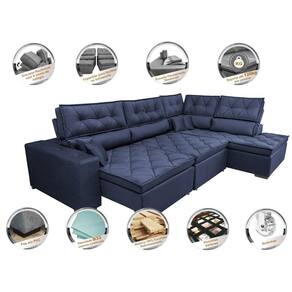 Sofá de Canto Retrátil e Reclinável Direito 3,00x2,36m Molas Cama inBox Espanha. Velusoft - Azul Marinho