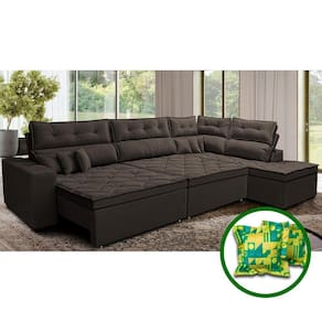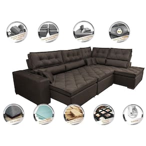 Sofá de Canto Retrátil e Reclinável Direito 3,40x2,36m Molas Cama inBox Espanha. Velusoft - Marrom