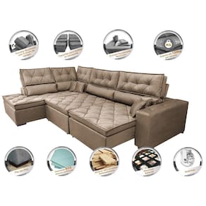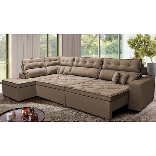 Chegou o Maravilhoso Sofá de Canto Retrátil e Reclinável com Molas Cama inBox Espanha. O que o torna especial são assentos com espuma D33 envolvidas em fibra Siliconada Compactada para que tenha um toque gostoso e aconchegante, além de seu maravilhoso designer com costuras duplas e puxes que o embelezam, proporcionando conforto de um colchão em um Belíssimo Sofá. Sua sala jamais será como antes!