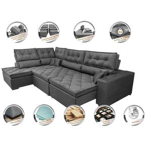 Sofá de Canto Retrátil e Reclinável Esquerdo 3,00x2,36m Molas Cama inBox Espanha. Velusoft - Cinza