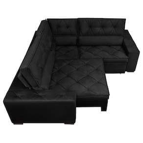 Sofá De Canto Retrátil, Reclinável, Molas Cama Inbox Austin 2,60m X 2,60m Suede Velusoft Preto Chegou o Maravilhoso Sofá de Canto Retrátil e Reclinável com Molas Cama inBox Austin. O que o torna especial são assentos com espuma D33 envolvidas em fibra Siliconada Compactada para que tenha um toque gostoso e aconchegante, proporcionando conforto de um colchão em um Belíssimo Sofá. Sua sala jamais será como antes! Características: -Encosto Reclinável com 5 posições, almofadas fixas compostas de 80% fibra siliconada e 20% flocos de espuma e percintas elasticas para maior conforto. -Assentos: Retráteis com espuma D33 envolvidas em fibra SILICONADA compactada, Molas espiral, percintas Pneumáticas com feltro para proteger do atrito com as molas. -Braços: Com 25cm de largura e com espuma D23 e costuras duplas. -Fixação: Grampos galvanizados -Estrutura de Madeira maciça 100% eucalipto de reflorestamento, produto ecologicamente correto -Tecido suede com toque aveludado