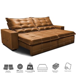 Sofá de Courino Retrátil e Reclinável 2,35m Cama inBox Bourbon. SoftGel D40 - Marrom Chocolate