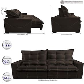 Sofá De Courino Retrátil E Reclinável 2,55m Cama Inbox Bourbon Softgel D40 Café