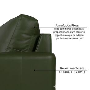 Sofá de Couro Legítimo 180cm Porto Rico Musgo - Verde