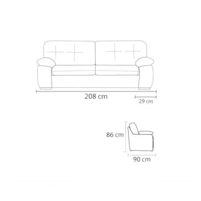 Dimensões do produto: 3 lugares: 2,08 m x 0,86 m 0,90 m (CxPxA)