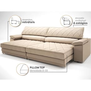 Enchimento do Assento:Pillow top D-33, Percinta Elástica e Mola Bonnel e Molas ensacadas (duplo molejo)