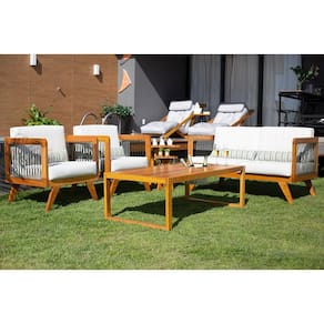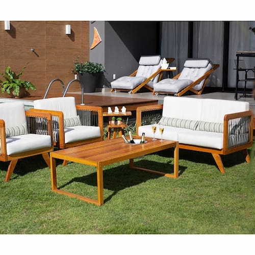 MadeiraSofá de Madeira 2 Lugares Corda Naval + 2 Poltronas Caribe + Mesa Cooler/Lareira