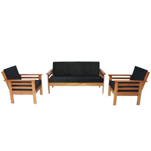 Sofá de Madeira Maciça 3 lugares e 2 Poltronas - Preto