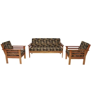 Sofá de Madeira Maciça 3 lugares e 2 Poltronas - Preto