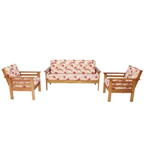 Sofá de Madeira Maciça 3 lugares e 2 Poltronas - Vermelho