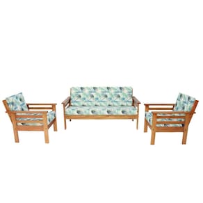 Sofá de Madeira Maciça 3 lugares e 2 Poltronas - Azul Claro
