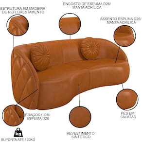 Altura: 78 | AssemblyRequired: Sim, sugerimos a contratação do nosso serviço de montagem (para os CEPs em que o serviço está dispon | Color: Caramelo | ColorFamily: Caramelo | ColorSimple: Caramelo | ColorSupplier: Caramelo | Cor: Caramelo | Gênero: Unisex | Largura: 240 | Manual: Sim | Marca: Mpozenato | Material: Madeira de Reflorestamento | MaterialFamily: Madeira de Reflorestamento | Model: Zion | Origem: | OriginCountry: | OriginState: PR | Peso: 81 kg | Peso Suportado: 240 Kg | ProductContents: 1 Sofá, 2 Almofadas | ProductHeight: 78 | ProductInstructions: Produto para uso em ambiente interno, nao devendo ficar exposto ao sol, calor e umidade excessivos. | ProductLength: 110 | ProductWarranty: 90 dias após o do produto | ProductWeight: 81 | ProductWidth: 240 | Profundidade: 110 | Requere montagem: Sim | SizeDescription: 240 x 78 x 110 cm | SupplierSimpleName: Sofá Decorativo com Almofadas 3 Lugares 240cm Tressê Zion M22 Sintético Caramelo - Mpozenato | Tipo de : Fabricante