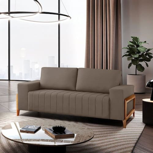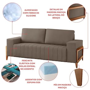 O Sofá Dinamarca é a solução para tornar sua sala de estar completa, e nada mais gostoso que receber a família, amigos ou curtir os seus momentos mais que especiais com o sofá Dinamarca! Com o visual elegante, moderno, compondo percintas elásticas e espuma D28 para maior resistência e conforto, base em madeira de eucalipto, detalhe em madeira maciça na lateral do braço, o Sofá Dinamarca é ideal para transformar a sala de estar do seu doce lar ! Produto Montado: Sim Acompanha Almofadas extras: Não Almofada do assento: Fixa Almofada do encosto: Removível Altura do assento até o chão: 53.0000 Altura do Braço: 53 cm Altura do Encosto: 47 cm Altura dos Pés: 16 cm Altura Máxima dos Pés: 16.0000 Ambiente Principal: Sala de Estar codigo_ean: 7900288114372 Complexidade da Montagem: Média: pode ser montado por mais de uma pessoa e/ou necessite de maior conhecimento para montagem Cor: Marrom Cor do Produto: Marrom Densidade do Assento: D-28 Enchimento do Assento: Hyper Soft Estilo de Braço: Braços Quadrados Firmeza do Assento: Médio Gramatura do Tecido: 374 g/m² Informações Complementares: Detalhe em madeira maciça na lateral do braço Itens Inclusos: 01 Sofá Largura do Braço: 20 cm Linha ou Coleção: Mundo Manual de Especificação Técnica: https://product-hub-prd.madeiramadeira.com.br/992171/documents/a682ca68-a0d2-4f36-b45b-a52fff2ef63e2808052204117440610097692.pdf Manual de Montagem e Instalação: https://product-hub-prd.madeiramadeira.com.br/992171/documents/611fd1bf-2777-4735-977d-09018d8b62f72808051204117440610063749.pdf Marca: Le estofados Material dos Pés: Madeira Maciça Montagem Flex: N/A Necessita Montagem: Sim Nível de Conforto: Confortável Origem do Produto: Nacional Peso: 45 kg Peso Suportado por m²: 130 kg/m² Pet Friendly: Não Possui Mola: Sim Possui Percintas Elásticas: Sim Possui Pés: 04 Possui Rodízio: Não Quantidade de Itens: 1 Recomendações de Uso, Manutenção e Limpeza: Utilizar pano umidecido Revestimento do Braço: Veludo Sistema de Montagem: Fixar os braços e acomodar as almofadas do encosto Suporta Até (kg): 130 kg Tecido Impermeável: Não Tecido Predominante: Veludo Tipo de Encosto: Fixo Tipo de Mola: Molas Bonnel Tipo de Sofá: Sofá Comum