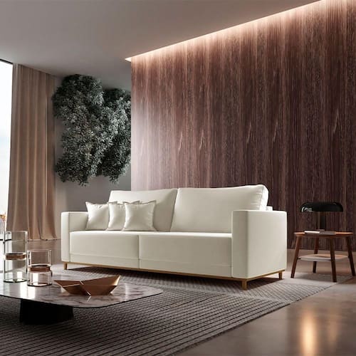 Design diferenciado, qualidade impecavel. A sua sala de estar so esta completa na presenca de um bom sofa e nada mais gostoso do que receber a familia ou curtir os seus momentos de descanso junto com nosso modelo Djon! Pensado para quem quer aliar bom gosto uma estrutura reforcada para o uso diario, a peca tem madeira na composicao e revestimento de toque agradavel para garantir a qualidade que voce merece.