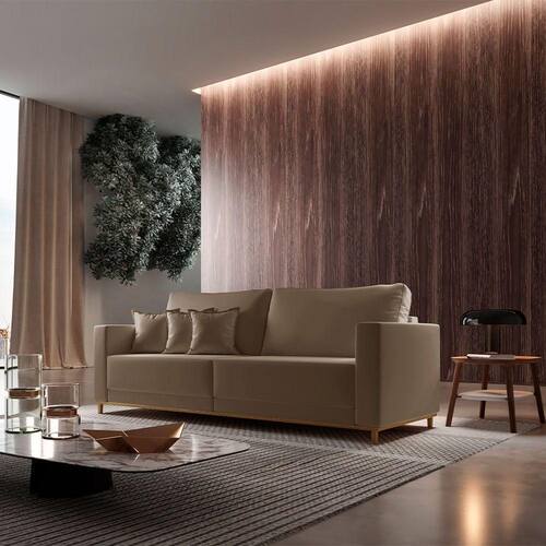 Design diferenciado, qualidade impecavel. A sua sala de estar so esta completa na presenca de um bom sofa e nada mais gostoso do que receber a familia ou curtir os seus momentos de descanso junto com nosso modelo Djon! Pensado para quem quer aliar bom gosto uma estrutura reforcada para o uso diario, a peca tem madeira na composicao e revestimento de toque agradavel para garantir a qualidade que voce merece.