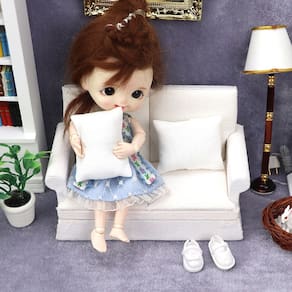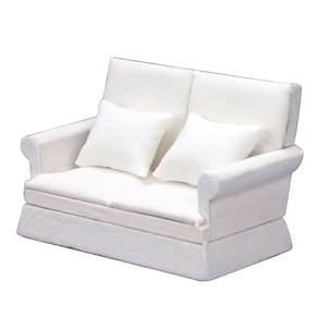 Tamanho: comprimento do sofá duplo 12,7 cm de largura 6,4 cm de altura 7,8 cm Material: tecido de madeira Peso: 100 g Perfeito para casas de bonecas em escala 1:12: este sofá duplo de tecido branco, com almofadas macias, foi projetado para casas de bonecas em escala 1:12, tornando-o um complemento ideal para qualquer configuração de sala de estar em miniatura. Design elegante e confortável: estofado em tecido branco macio com almofadas aconchegantes, este sofá combina estilo e conforto para aprimorar o design interior da sua casa de bonecas. Construção durável e segura: feito de madeira e tecido de alta qualidade, este sofá em miniatura é resistente e feito para durar. Observe que é um modelo de brinquedo e não se destina ao uso na vida real. Incentiva brincadeiras criativas: perfeito para brincar de fingir, este sofá é uma ótima maneira de inspirar criatividade e contar histórias enquanto decora seu teatro em miniatura ou casa dos sonhos. Não tóxico e seguro para crianças: feito de materiais seguros, este sofá em miniatura é adequado para crianças a partir de 3 anos. No entanto, é um modelo de brinquedo e não deve ser considerado adequado para crianças pequenas que podem engolir peças pequenas.