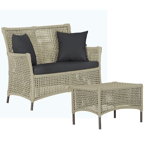 Feito em aluminio com uma sofisticada micro pintura, este Sofa e mesa sao a combinacao perfeita de estilo e resistencia. A corda nautica adiciona um toque de rusticidade moderna, enquanto o estofado impermeavel garante que o seu Sofa e mesa estejam sempre impecaveis, mesmo apos uma chuva inesperada ou um acidente com liquidos. Adicione um toque de sofisticacao e conforto ao seu espaco com o Sofa e a mesa Igapo.