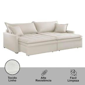 Sofá Elegance Linho 02 Módulos 120 Cm B25 Cm Meu Sofá Online A302 Linho Branco Sofa Elegance Linho 02 Modulos 120 cm B25 cm Meu Sofa Online Este sofa oferece um assento retratil com bau, garantindo espaco extra para armazenamento. Equipado com percinta elastica, espuma D28 com um pillow de 10cm de espessura e detalhes em matelasse para proporcionar conforto excepcional. O encosto com mecanismo reclinavel para ajuste personalizado, o sofa conta com almofadas soltas preenchidas com fibras siliconadas, alem de incluir almofadas decorativas para adicionar um toque de estilo ao ambiente. Construido com espuma D28 o braco oferece suporte adequado para maximizar o conforto durante o uso do sofa.