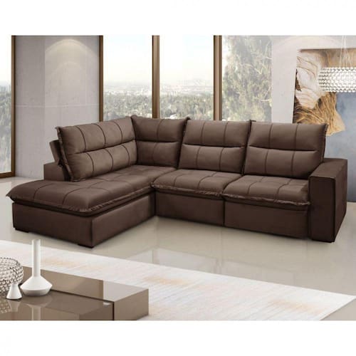 Sofá/ Estofado Com 2 Lugares E Chaise Direto Marrom