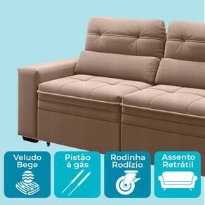 Seu sofá ideal está na Kasa Mix!O Sofá Filipinas é a combinação ideal de funcionalidade e conforto. Revestido em veludo sofisticado, traz charme e elegância para sua sala de estar, valorizando a decoração com um design moderno.Com assentos retráteis, encostos reclináveis e baú embutido, oferece praticidade no dia a dia, além de espaço extra para organização. Sua estrutura reforçada e acabamento de qualidade garantem durabilidade, conforto e estilo em um só produto.Ficha Técnica Sofá:Modelo: FilipinasMarca: SMPCor: BegeEnchimento: Espuma D26, BaúTecido: VeludoMaterial dos pés: PVCLargura: 208cmComprimento: 92cmComprimento Assento Aberto: 125cmAltura: 98cmSuporte de Peso: 160KgGarantia: 3 MesesAtenção:Antes da compra certifique-se de que o produto passa por elevadores, portas e corredores.As transportadoras não realizam entregas por escadas ou içamentos.Caso o item não caiba no elevador, a entrega será considerada concluída no térreo do prédio.A cor e tonalidade do produto pode variar de acordo com o dispositivo que o usuário está acessando.