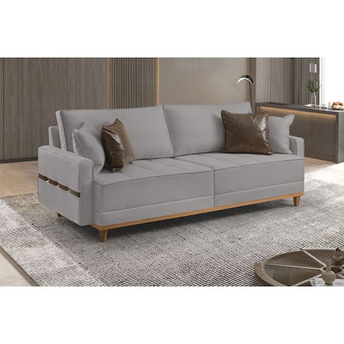 Madeira de eucalipto tratada, espuma D-28 Soft, molas Bonnel, fibra siliconada, tecido linho, madeira maciça.Vendido e entregue por BELLOSOFA