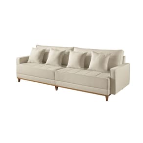 Caracteristicas: Sofa Marca: Martins Estofados Modelo: M-199 Modelo inteirico: estrutura unica, mais robusta 6 pes em madeira macica Pinus/Sinamomo Assento fixo com espuma D-28 Soft e molas Bonnel Detalhe de debrum no assento Encosto fixo com almofadas soltas em fibra de silicone e acabamento com debrum Persintas elasticas para maior sustentacao Bracos com 10 cm de largura, revestidos com espuma D-28 firme Revestimento em linho B-333 Estrutura em madeira de eucalipto tratada, aparelhada Beneficios e Funcionalidades Design com Acabamento Refinado: Detalhes em debrum no assento e encosto valorizam o visual Conforto Duradouro: Assento com molas Bonnel e encosto com almofadas soltas em fibra de silicone Alta Resistencia: Estrutura em madeira tratada e pes em madeira macica Estilo Sofisticado: Ideal para ambientes residenciais e comerciais Acabamento Premium: Revestimento em linho e costura de alto padrao