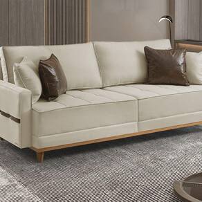 Estrutura em madeira de eucalipto tratada, assento em espuma D-28 Soft e molas Bonnel, encosto em fibra siliconada, pés em madeira maciça Pinus/Sinamomo, revestimento em tecido linho.Vendido e entregue por WebContinental