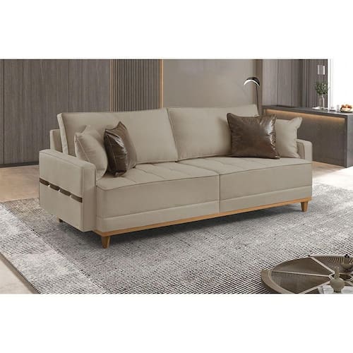 Madeira de eucalipto, Tecido linho, Espuma D-28 Soft, Molas Bonnel, Fibra siliconada, Madeira maciça (pés)Vendido e entregue por WebContinental