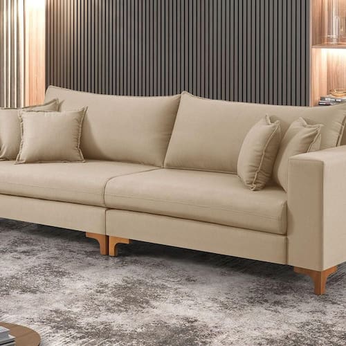 Estrutura em madeira de eucalipto tratada, assento com espuma D-28 Soft e molas Bonnel, encosto com fibra de silicone, revestimento em linho B-333.Vendido e entregue por WebContinental