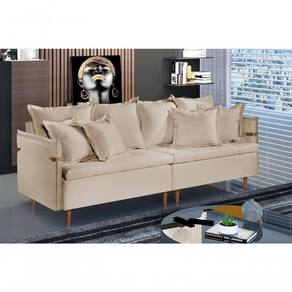 Sofá Fixo Atlas 3 Lugares Luxo 1,80 M Castellar Móbile Veludo Bege Claro
