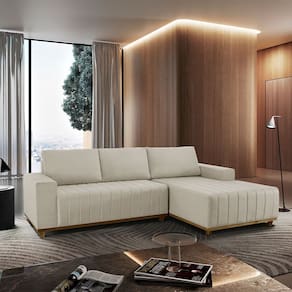 Sofá Fixo Com Chaise 2,3M Boreal Linho Com Molas Lado Direito Meu Sofá Online - Bege Claro